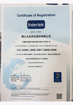 潛江永安藥業(yè)股份有限公司成立于2001年,坐落于江漢平原腹地潛江市國家高新技術(shù)產(chǎn)業(yè)開發(fā)區(qū),占地500余畝,注冊資金貳億玖仟肆佰陸拾捌萬貳仟伍佰元整,是一家擁有自主知識產(chǎn)權(quán)的國家高新技術(shù)企業(yè)。公司股票于2010年3 月5日在深圳證券交易所掛牌上市(股票代碼為002365)。公司具有雄厚的技術(shù)開發(fā)能力,是湖北省創(chuàng)新型企業(yè)和湖北省知識產(chǎn)權(quán)建設(shè)示范企業(yè)。公司研發(fā)平臺分別被認(rèn)定為省級企業(yè)技術(shù)中心和湖北省功能性食品添加劑工程技術(shù)研究中心。 經(jīng)過多年的發(fā)展,公司形成了以食品及藥品添加劑牛磺